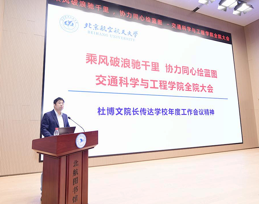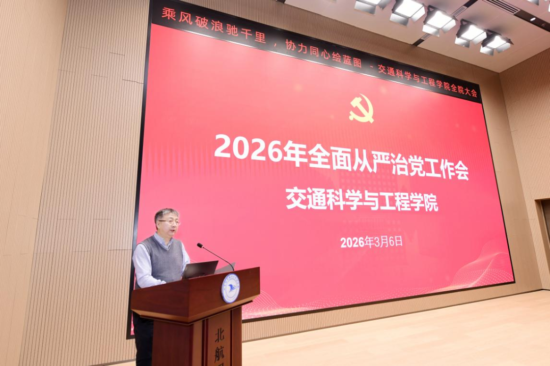 3月6日,交通科学与工程学院2026年度全院大会在沙河校区图书馆第一报告厅隆重召开。会议以“乘风破浪驰千里,协力同心绘蓝图”为主题,深入学习领会学校年度工作会议精神,紧紧围绕学院2026年重点任务,就全面从严治党、正确政绩观教育以及全国“两会”期间安全稳定工作作出全面部署。会议旨在进一步统一思想、凝聚共识,为推动学院高质量发展谋篇布局、蓄势赋能。学院领导班子及全体教职工参加大会,会议由学院党委书记杨世春主持。