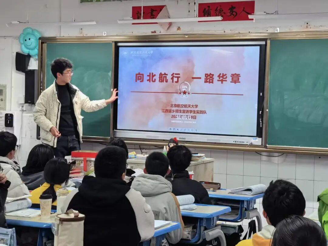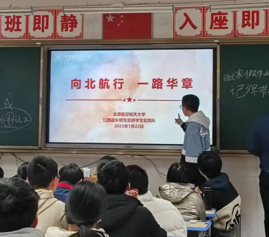 为做好2025年江西高考招生宣传工作,北航江西招生组于2025年寒假组织实践队赴江西开展返乡宣讲,架起母校与北航衔接的桥梁,并弘扬以“空天报国”为内核的北航精神。