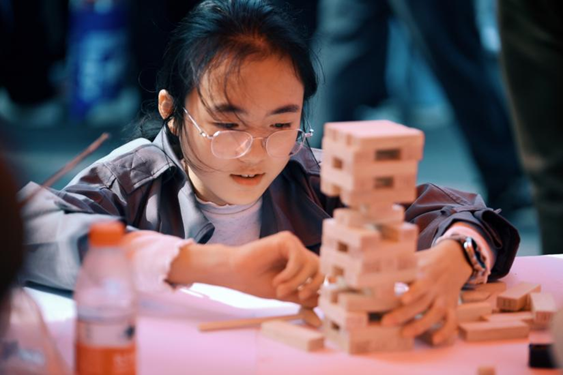 2.危楼千钧——快乐抽积木:单手轻取,稳如泰山。要想高塔屹立不倒,便要手稳心细,方能稳操胜券!