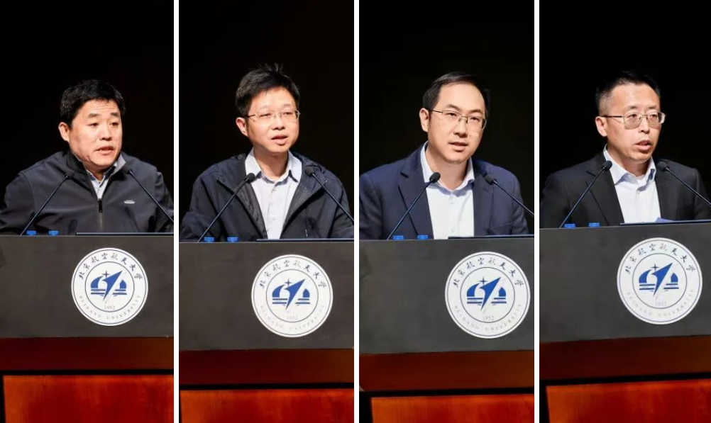 机械工程及自动化学院院长陈华伟、电子信息工程学院党委书记戴飞、经济管理学院院长吴俊杰、中法工程师学院/国际通用工程学院院长耿立升、人文社会科学学院(公共管理学院)高等教育研究所所长赵世奎、航空发动机研究院党委书记袁星、集成电路科学与工程学院教师彭守仲分别作为各组代表发言